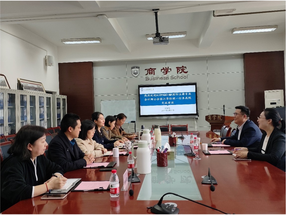 2024年3月22日下午,AICPA&CIMA国际注册专业会计师公会张江华经理与邢惠㵟经理来访必赢官网进行CIMA项目交流,必赢线路检测中心院长耿紫珍、副院长朱金凤、工商管理系主任王海珍、工商管理系副主任单春霞、国际教育教学中心副主任毕可佳以及综合办主任杨彩霞参加了会议,会议由毕可佳副教授主持。