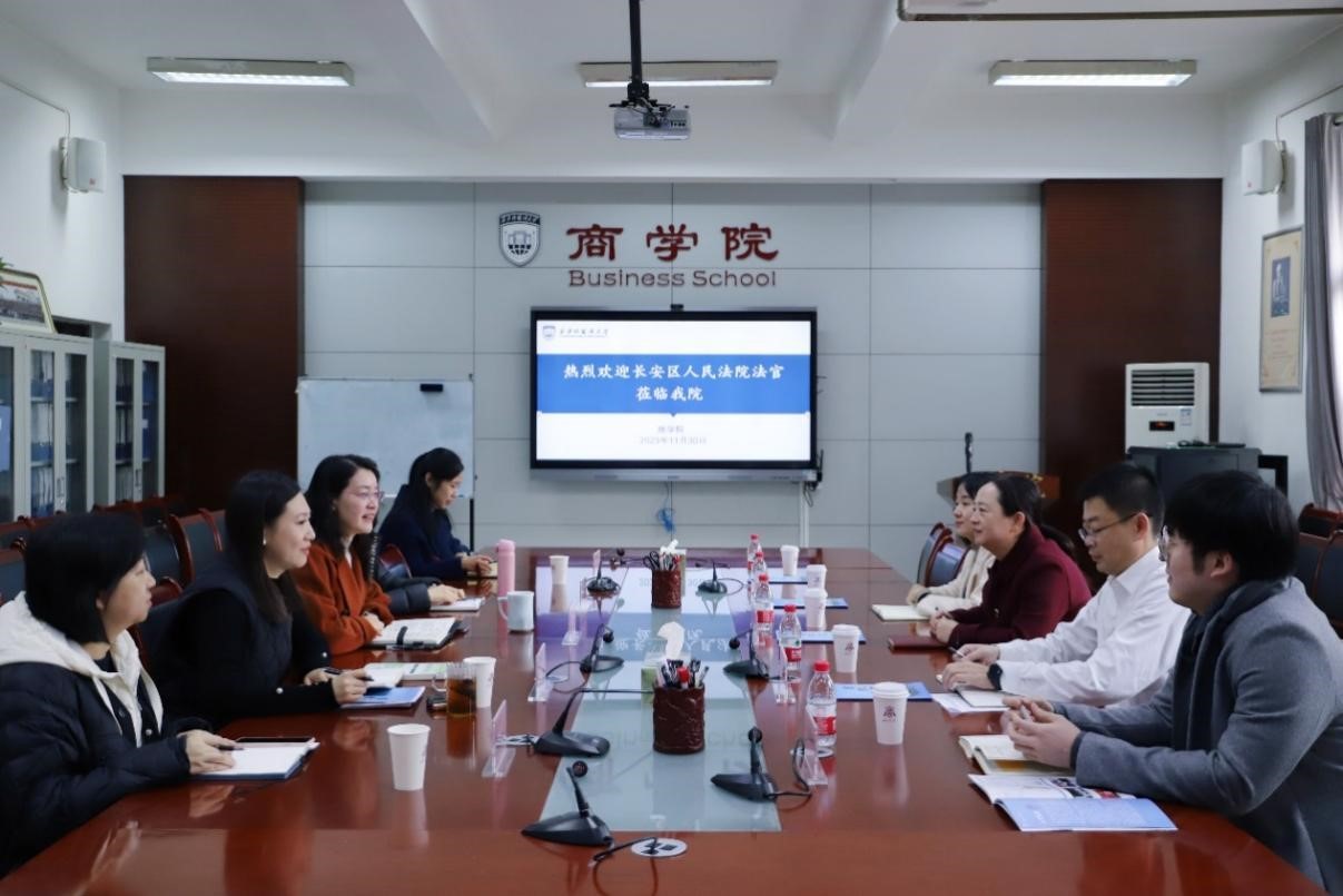 长安区法院综合审判庭副庭长张亮、法官王维君、法官助理王曼丽。必赢线路检测中心党委副书记张晶、副院长薛晋洁、教学办主任杨彩霞、国际商务系教师马一飞参加了座谈交流。(图/文:马一飞;审核:朱金凤、邓雯)